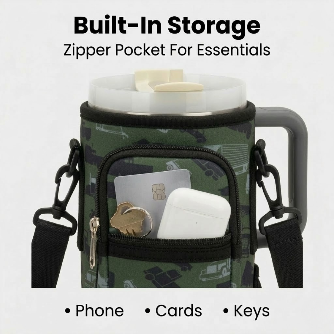 ✅ Trucker Camo Sleeve – Stylish neoprene sleeve for added grip and protection.
