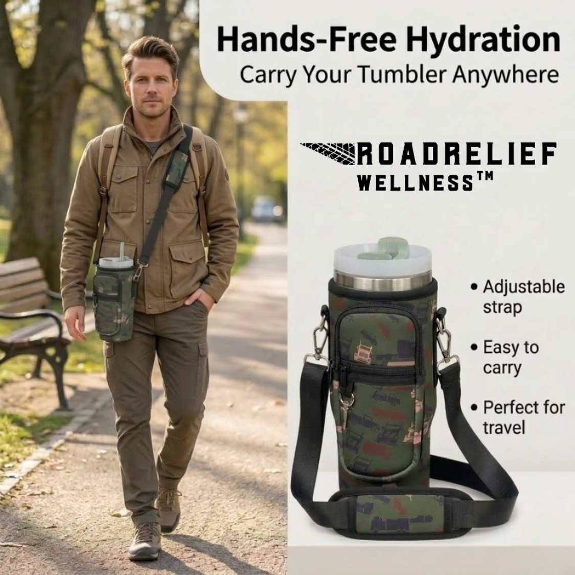 Stay hydrated on the road with the 40 oz insulated tumbler with handle, designed for truckers, travelers, and outdoor enthusiasts. This stainless steel travel mug features double-wall vacuum insulation to keep drinks hot or cold for hours. The Trucker Camo Neoprene Sleeve adds grip, reduces condensation, and protects against dents and scratches. Fits most cup holders—perfect for long hauls, commuting, or everyday use.