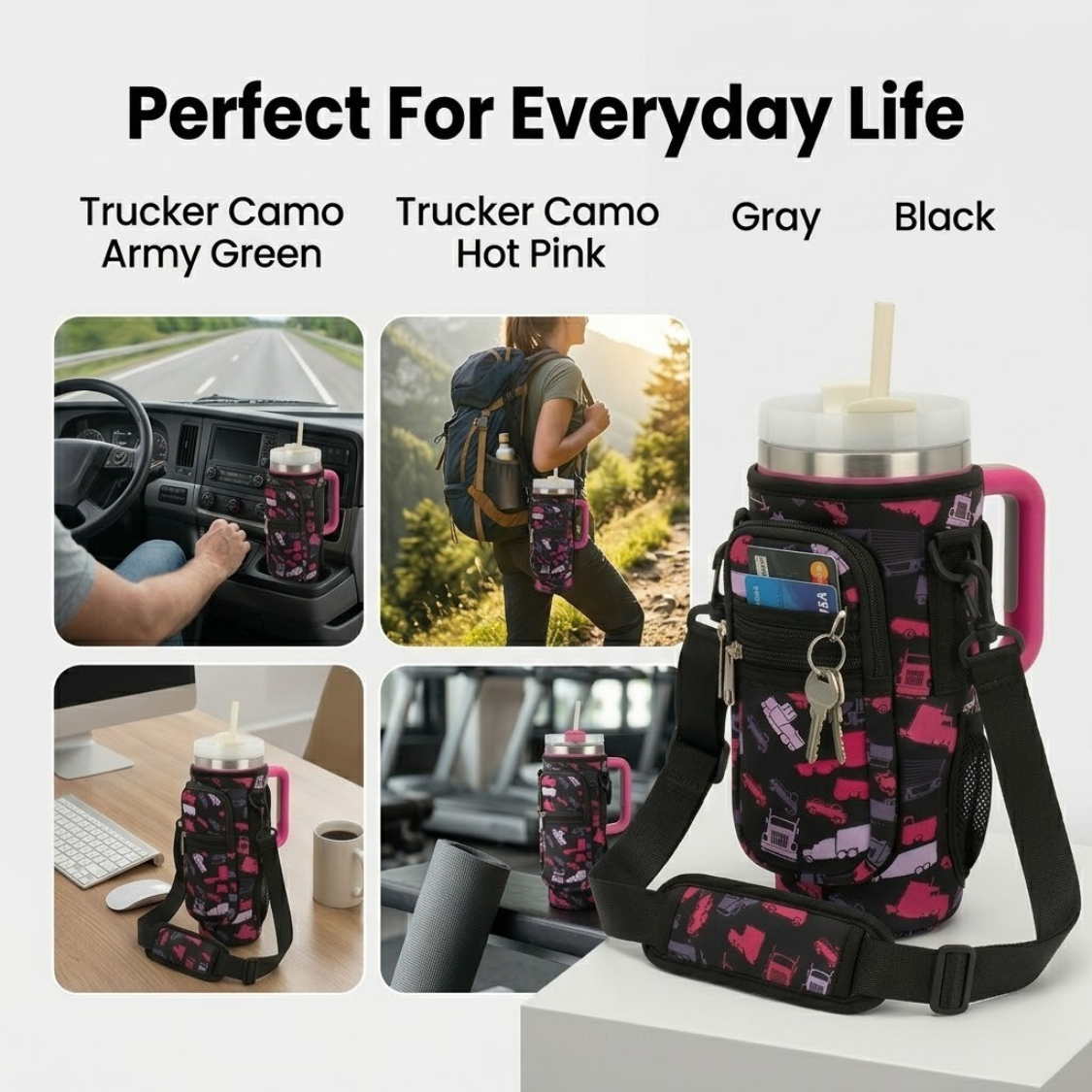 ✅ Trucker Camo Sleeve – Stylish neoprene sleeve for added grip and protection.